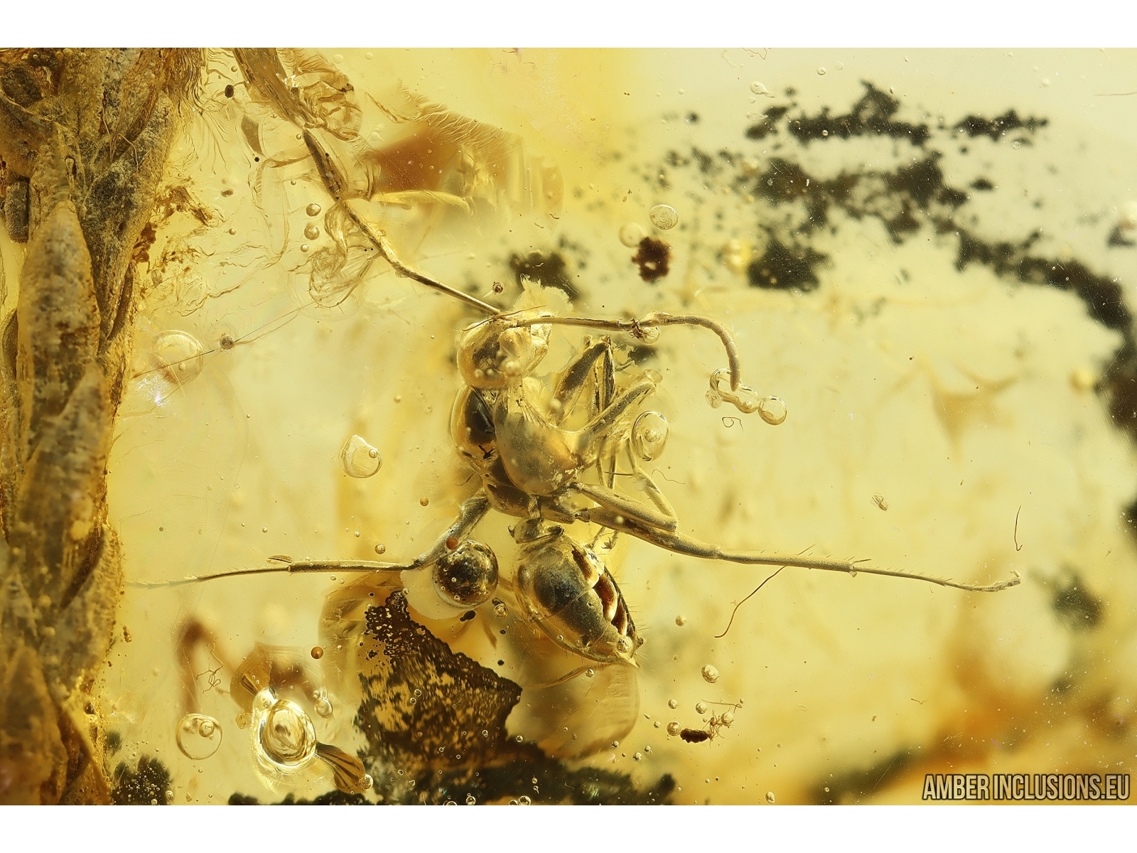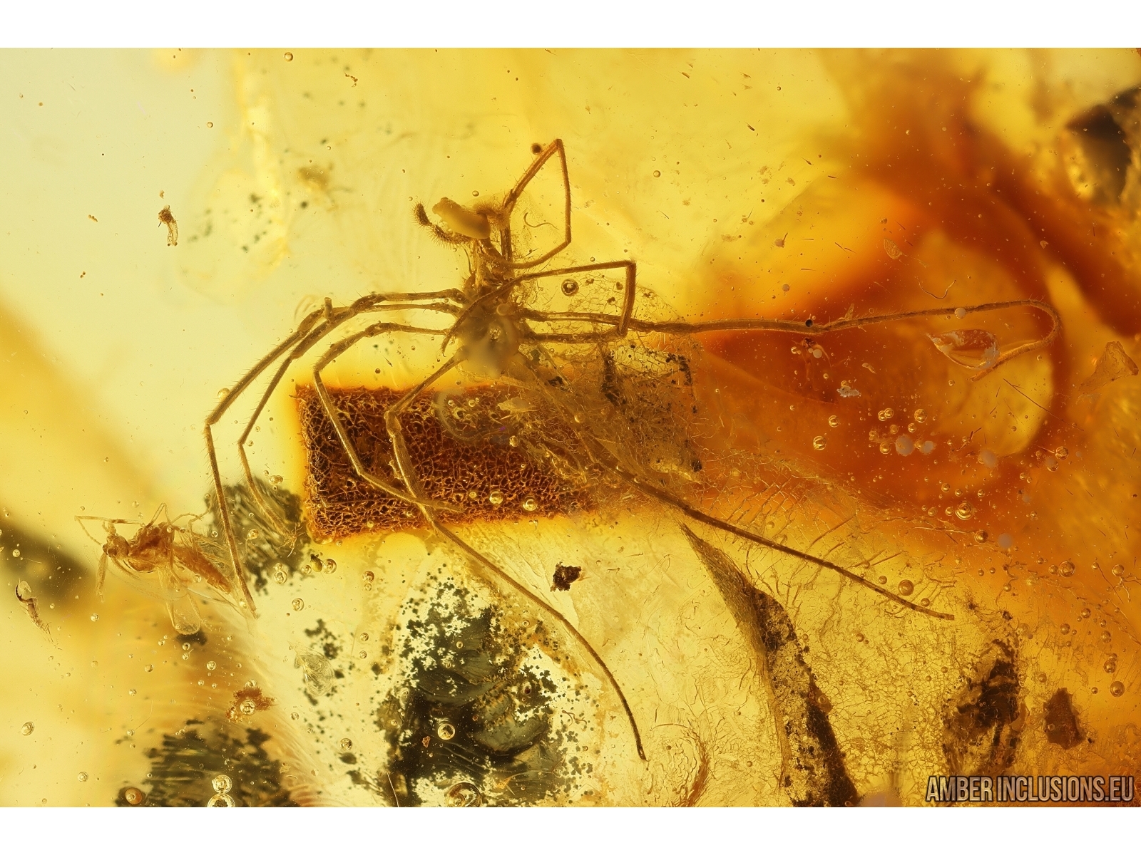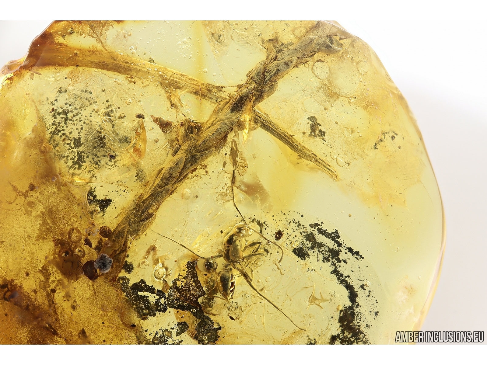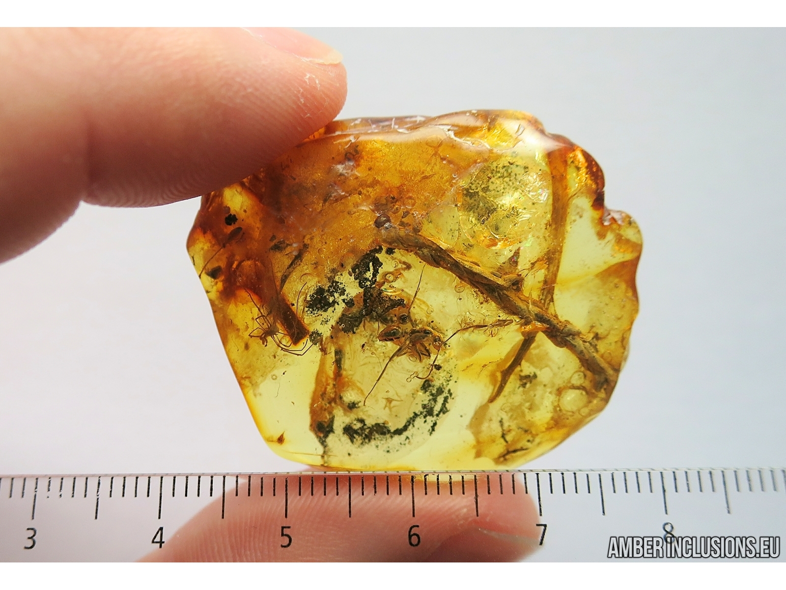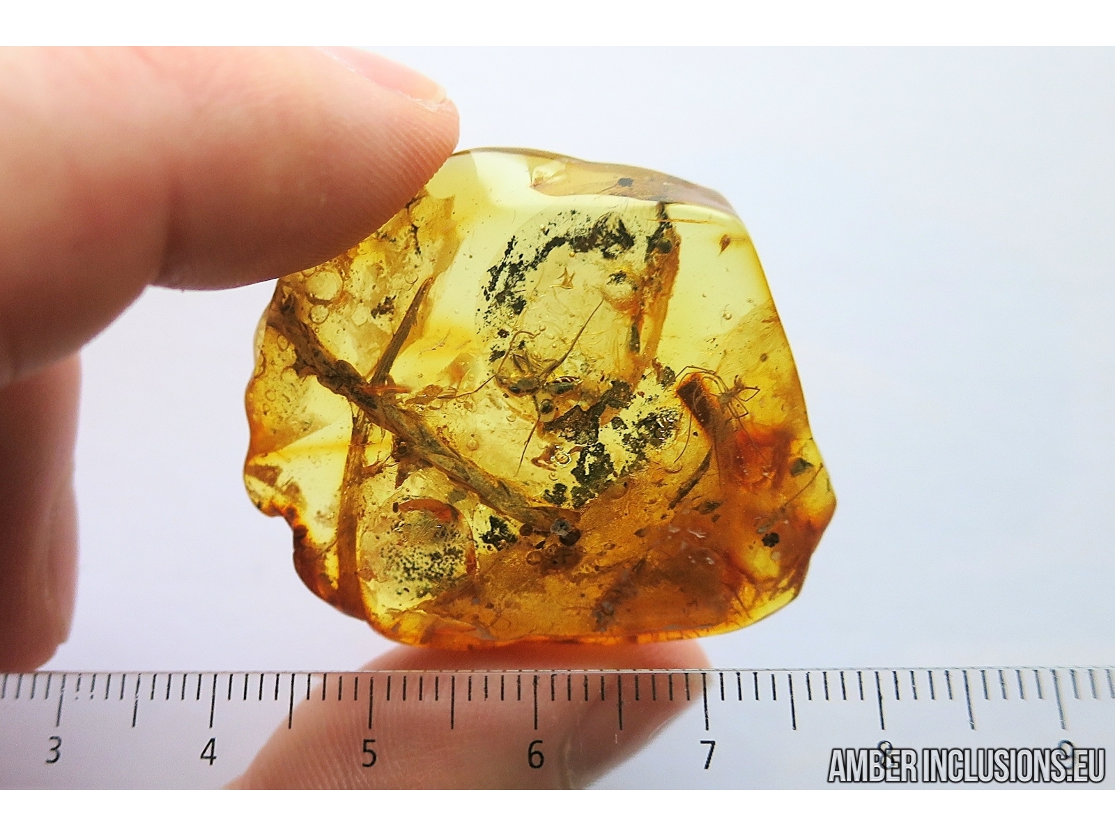 Ukrainian Rovno amber stone with fossil inclusions, trapped 34-56 million years ago -Thuja, Ant Hymenoptera, Harvestman Opiliones and More.