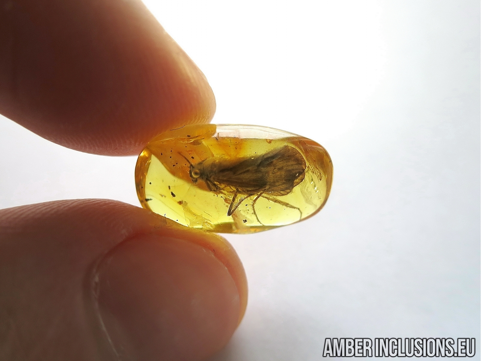 Baltic amber stone with fossil inclusion- Trichoptera, Caddisfly.