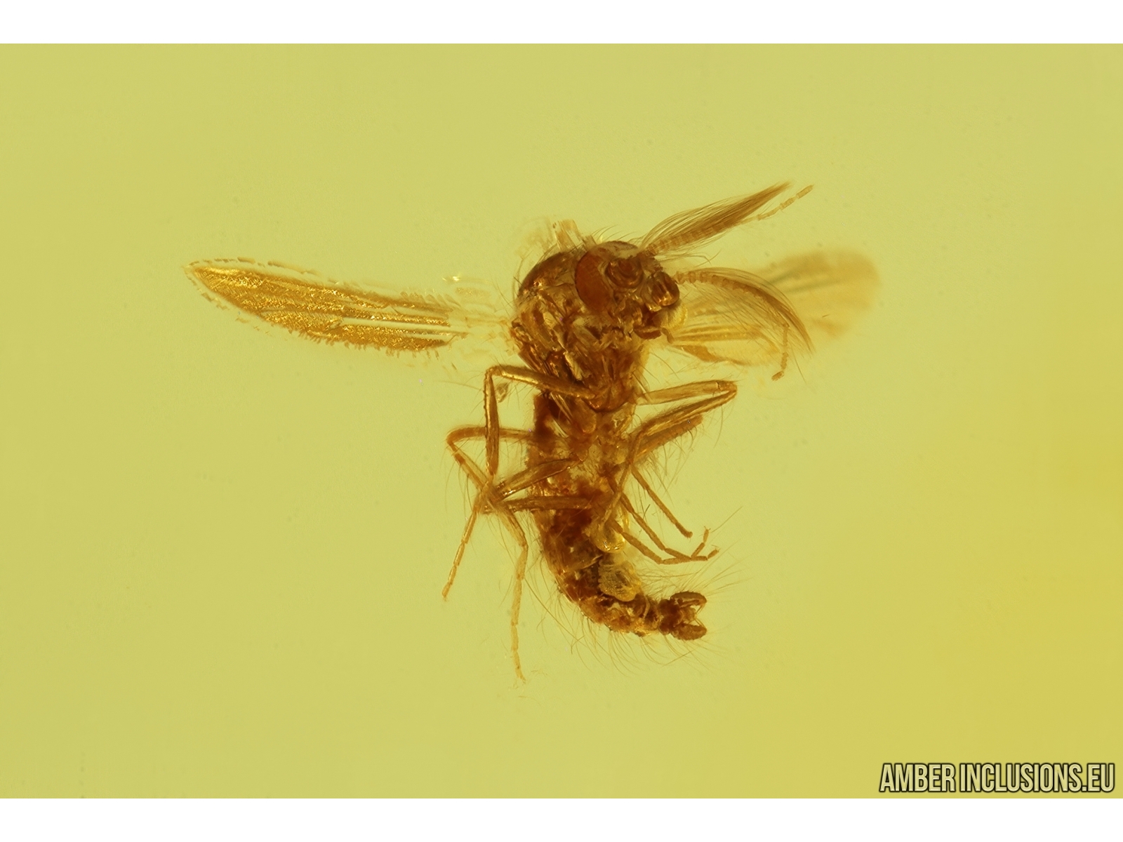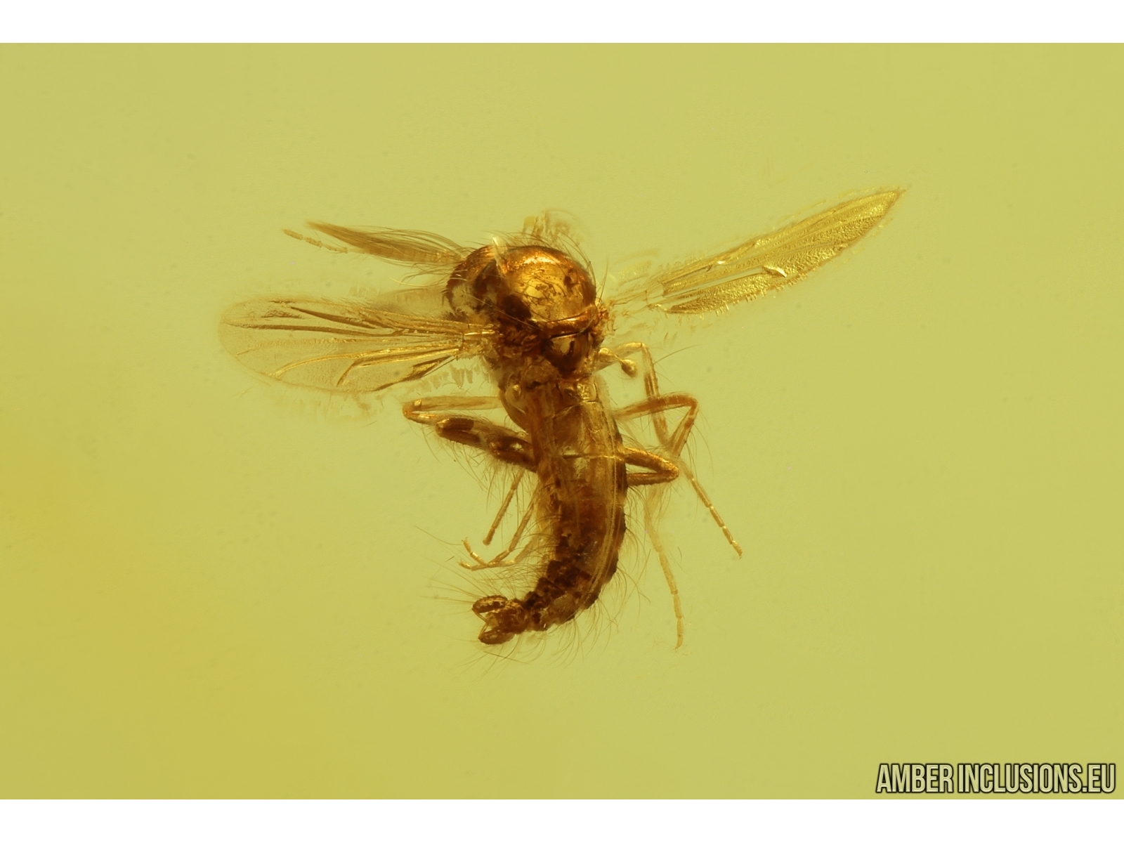 It weighs 2.3 g. Measurements of stone 28x20x7mm, length of midge ~1.5mm, spider web ~20mm.
