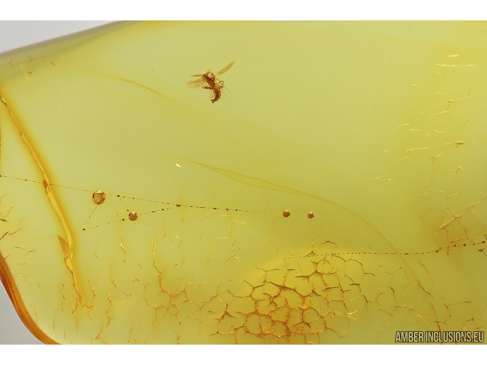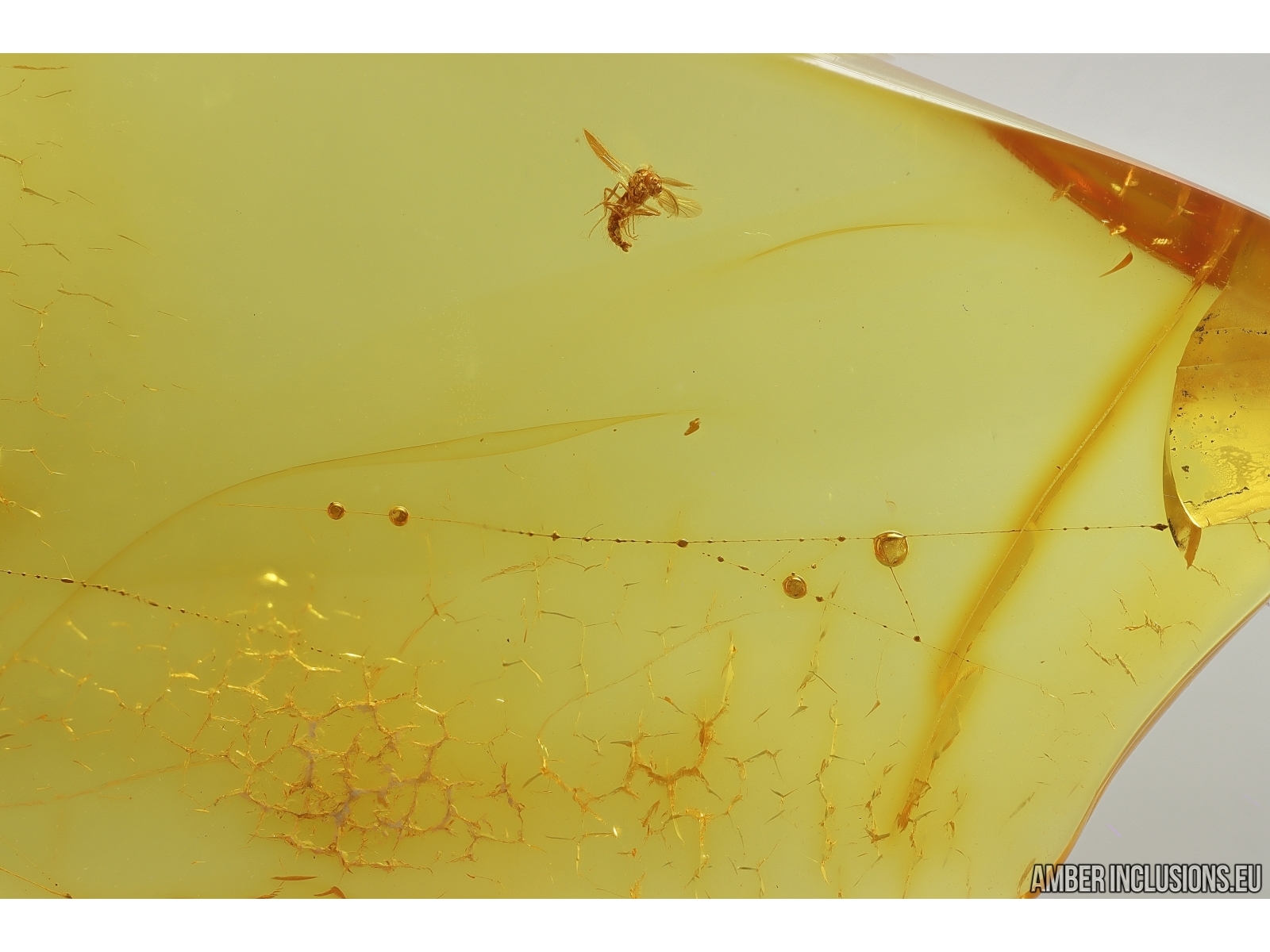 Baltic amber stone with fossil inclusions, trapped 34-56 million years ago - True midge Chironomidae and Spider Web.