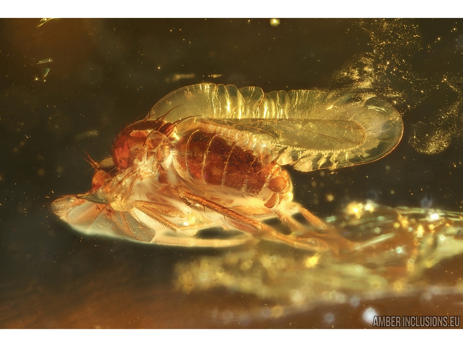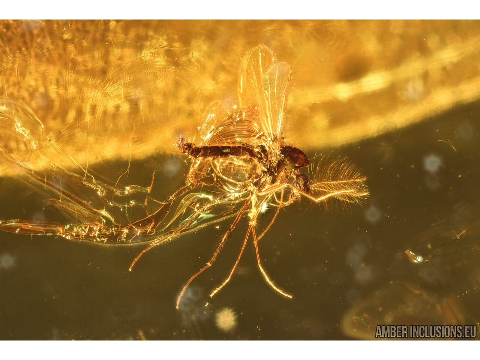 Ukrainian, Rovno amber stone with fossil insect - True Midge Chironomidae.