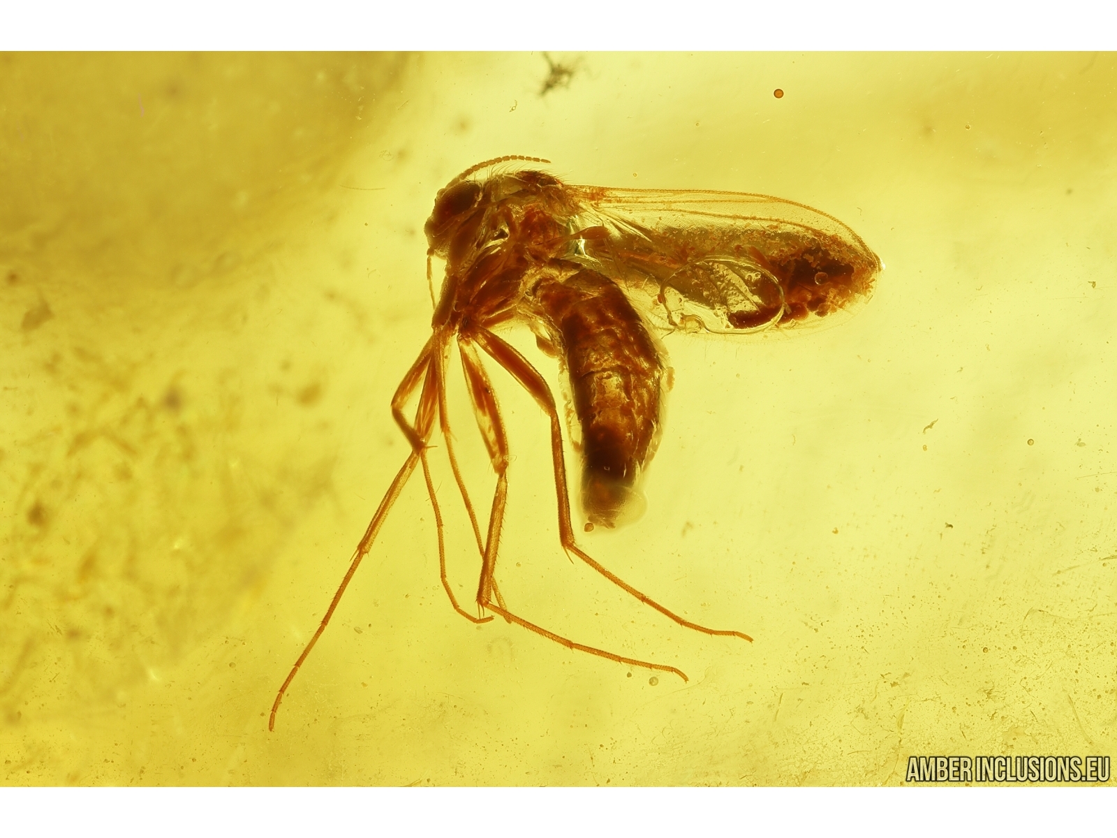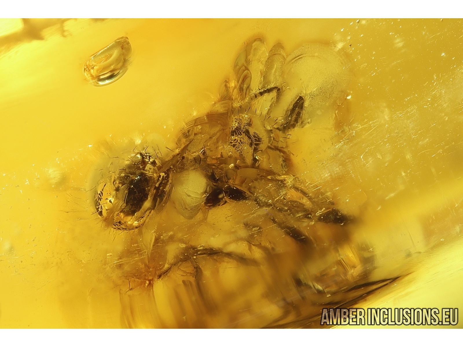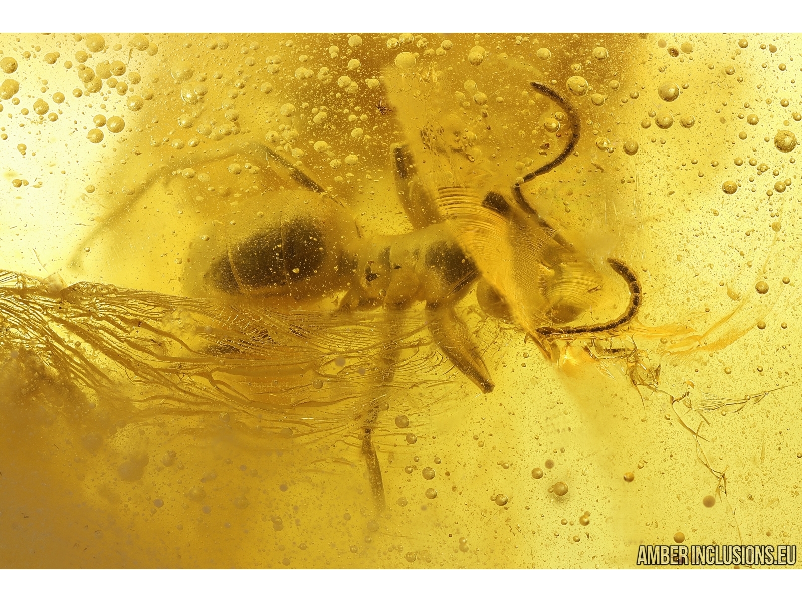 Ukrainian Rovno amber stone with fossil inclusions, trapped 34-56 million years ago - Two Ants Hymenoptera and fungus gnat.