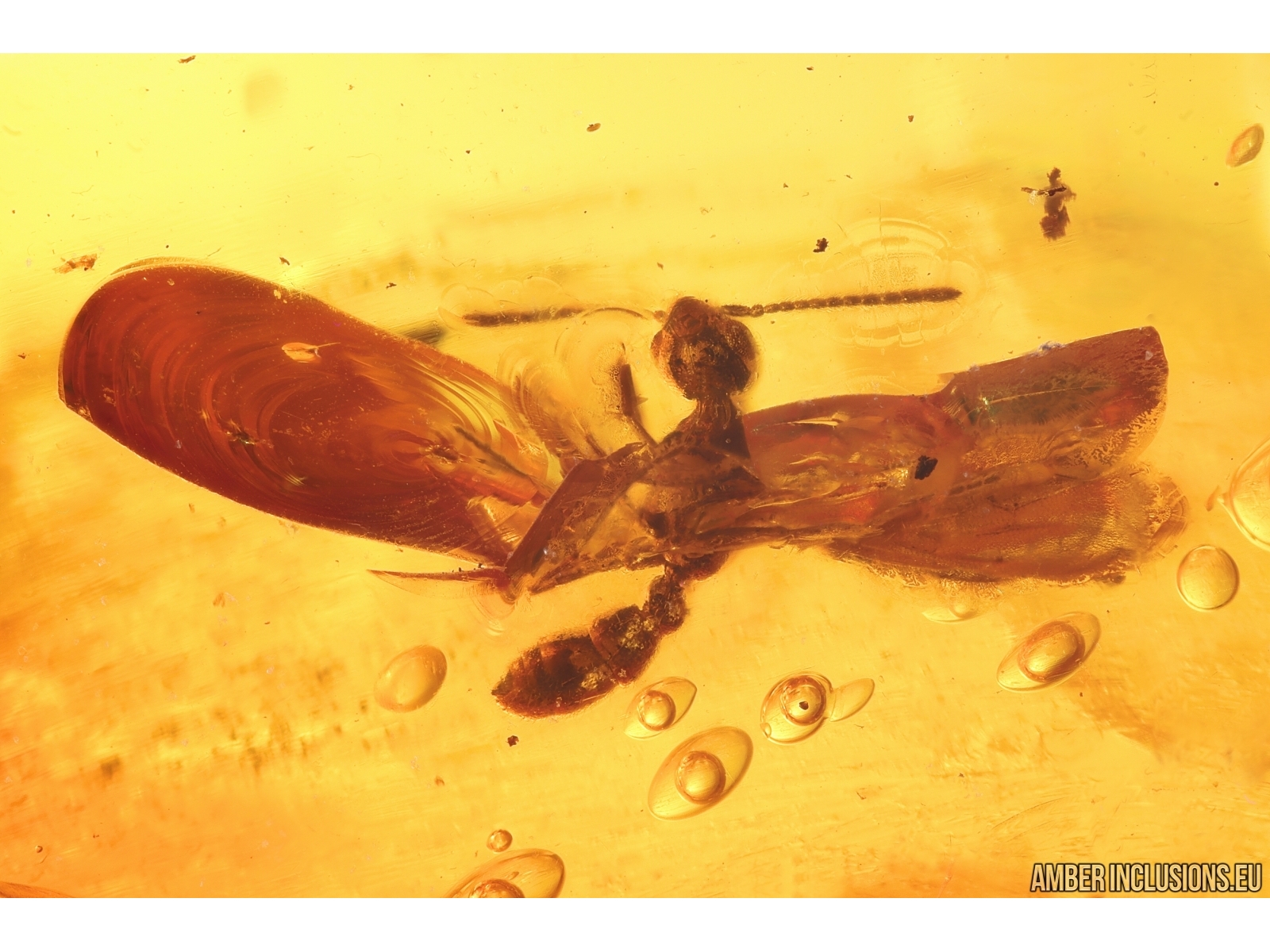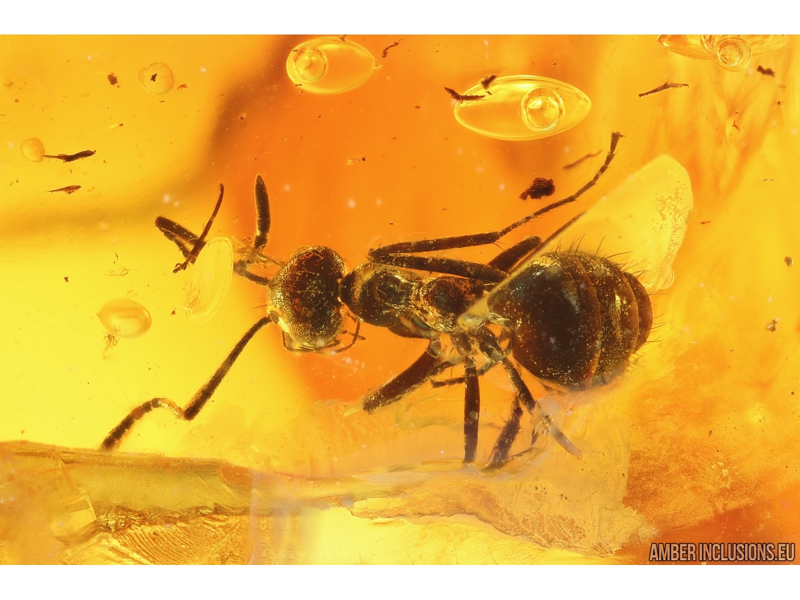 Ukrainian rovno amber stone with fossil inclusions, trapped 34-56 million years ago -Two Rare ants Stigmatomma eocenicum and Nylanderia pygmaea.