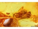 Baltic amber stone with fossil inclusions, trapped 34-56 million years ago - Two spiders probably in mating dance and Aphid.