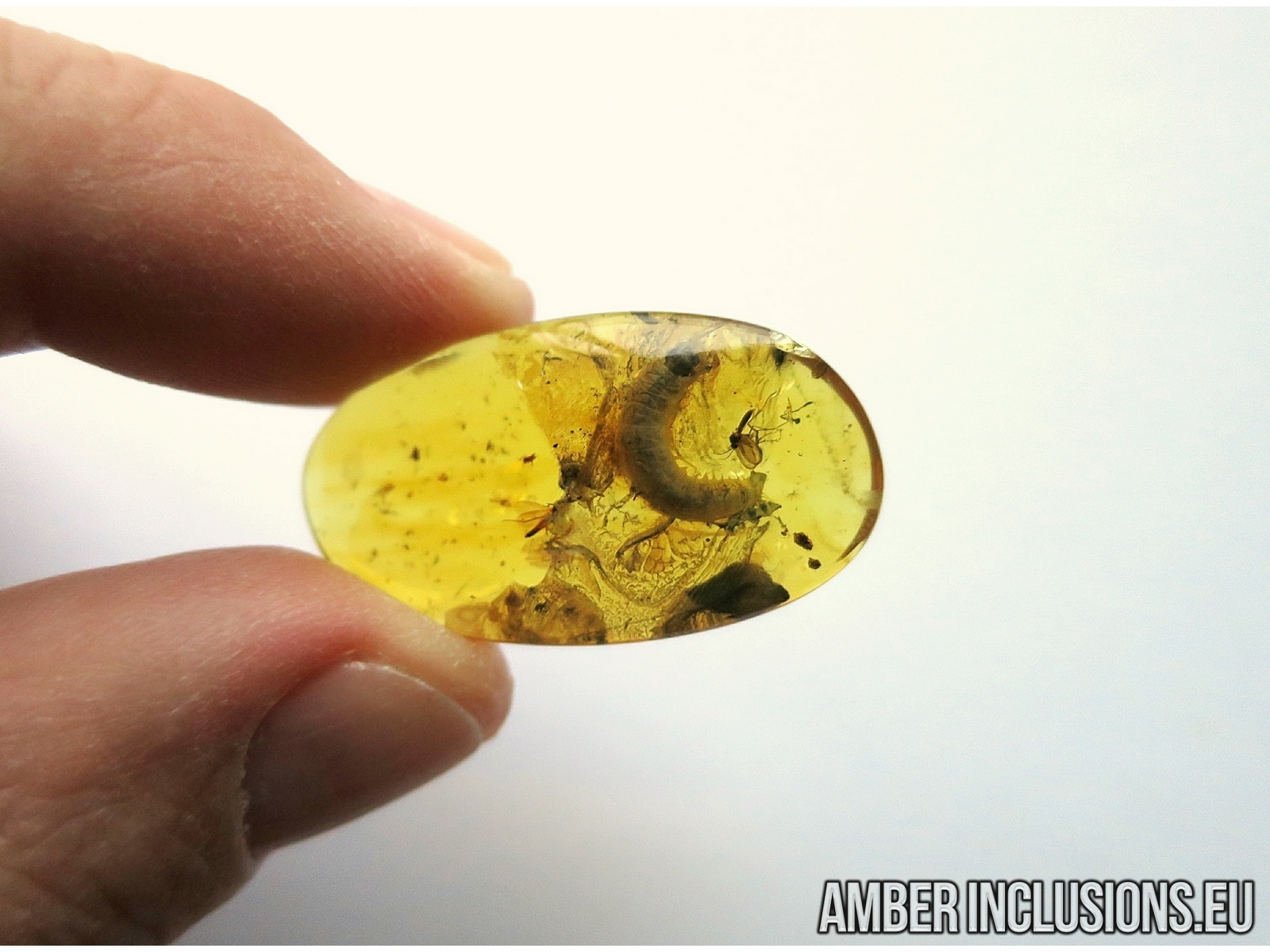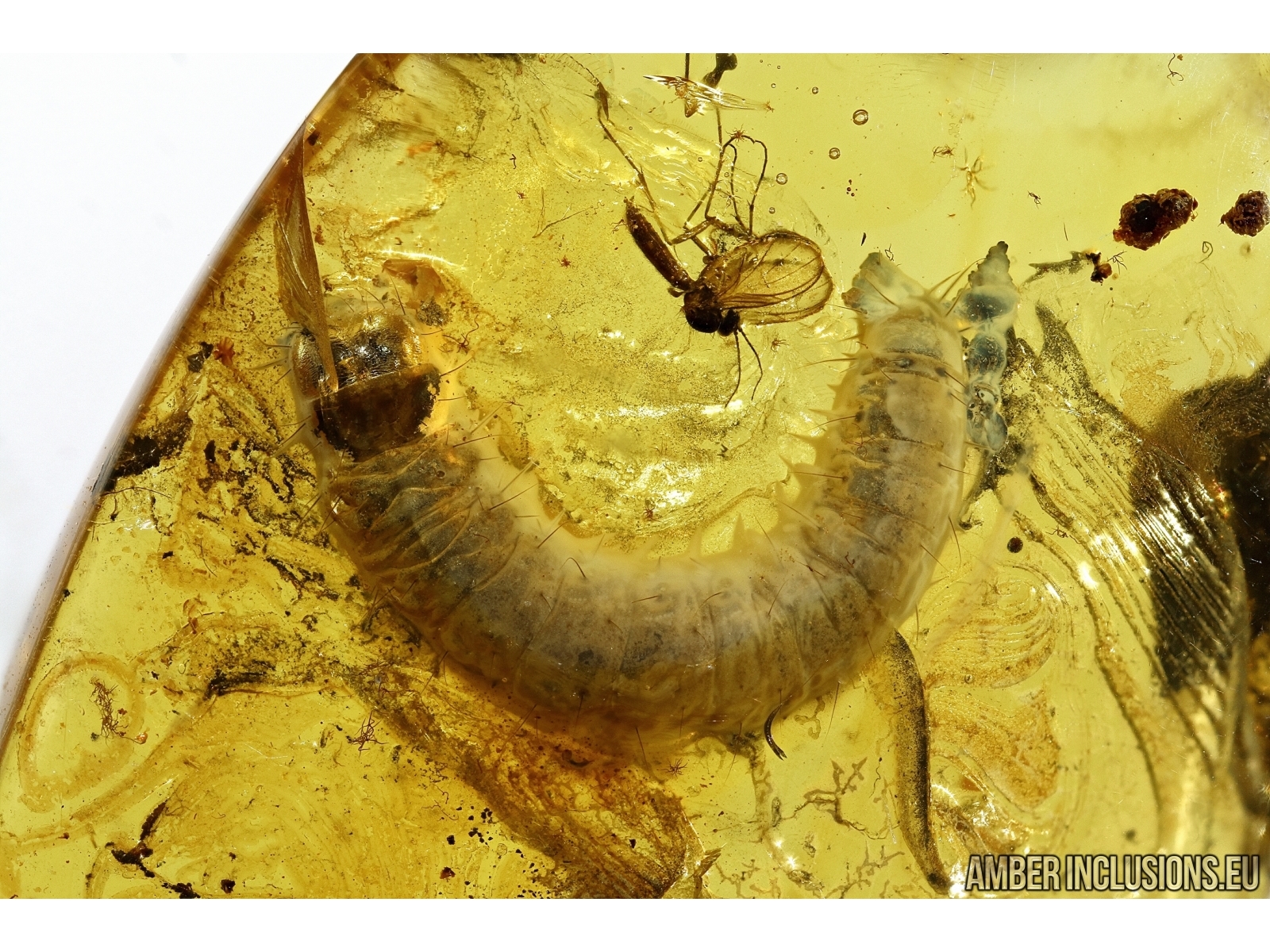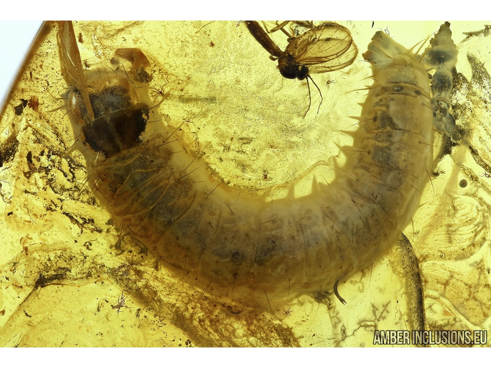 Baltic amber stone with fossil inclusion – LEPIDOPTERA, Caterpillar.