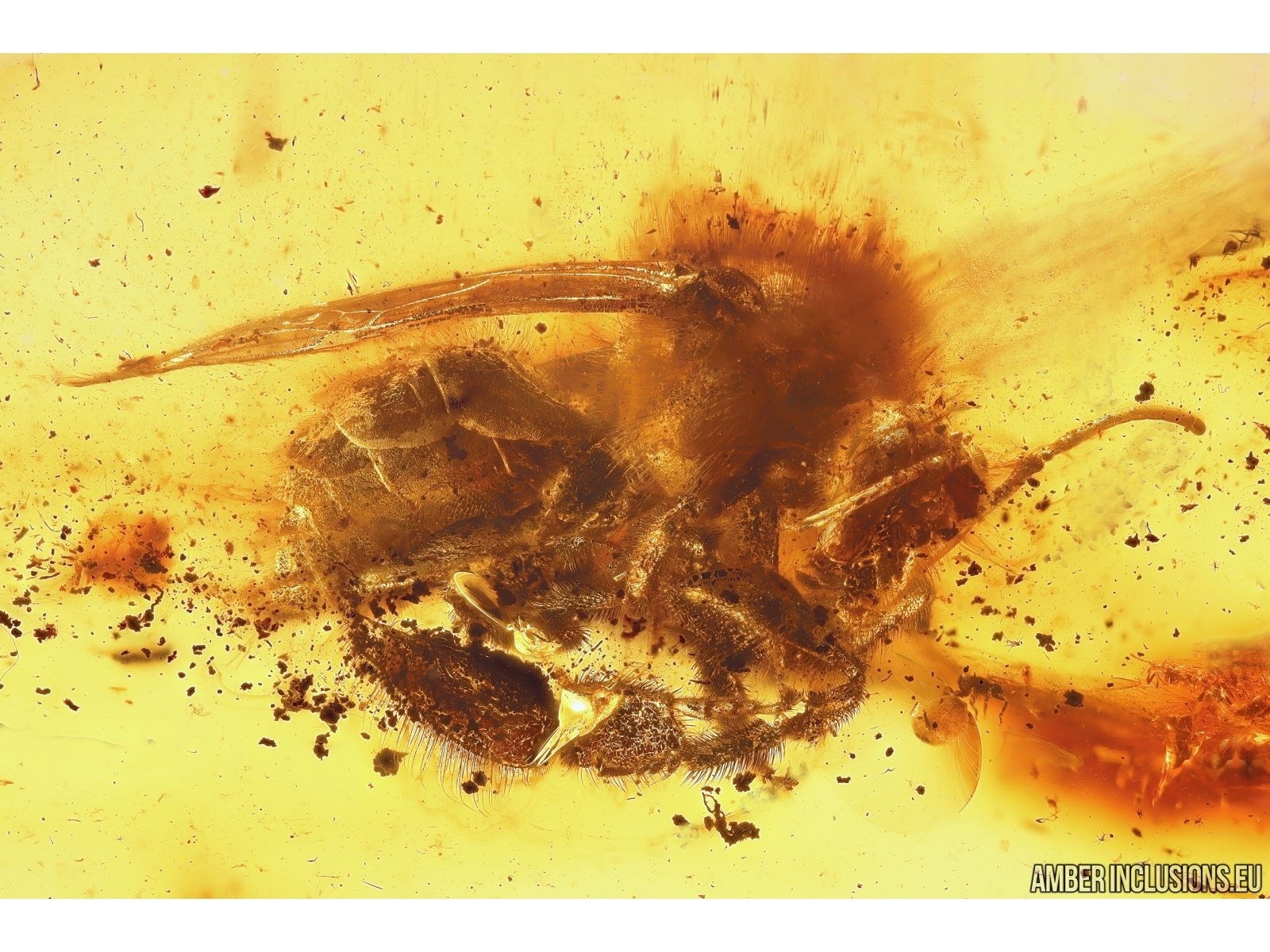 Baltic amber stone with fossil inclusion, trapped 34-56 million years ago -Very nice Rare Honey Bee Apoidea.
