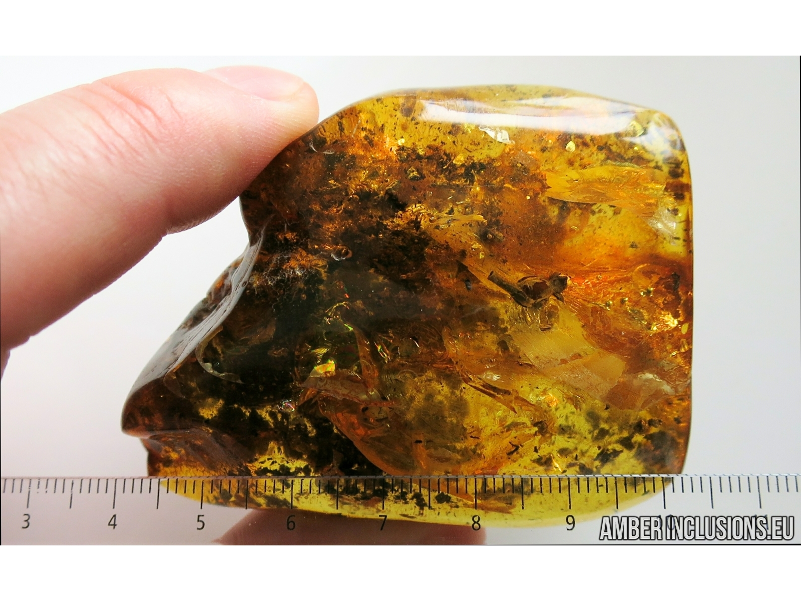 Big Baltic amber stone with fossil inclusions, trapped 34-56 million years ago - Very nice Flower and More.