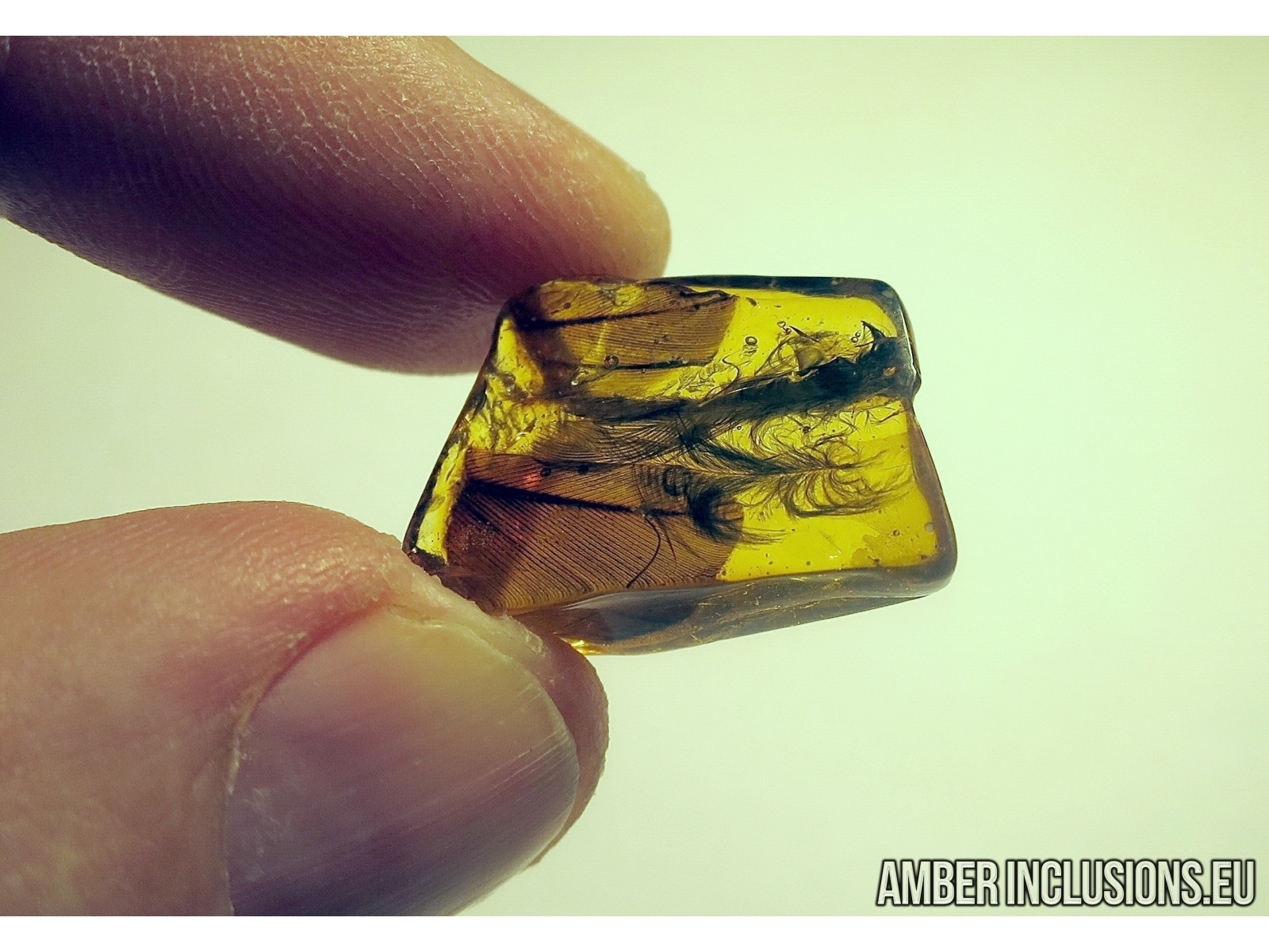 Baltic amber stone with fossil inclusion- Very rare 5 Bird Feathers.