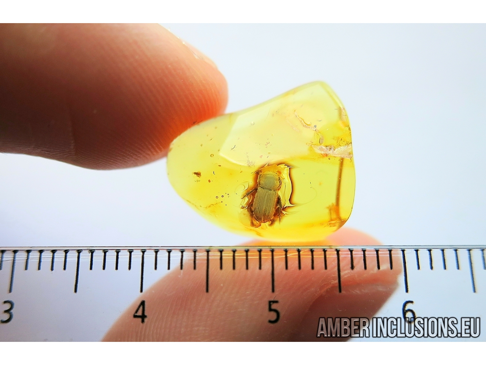 It weighs 0.9 grams. Measurements of stone 16x15x7mm, length of beetle ~4.8mm.