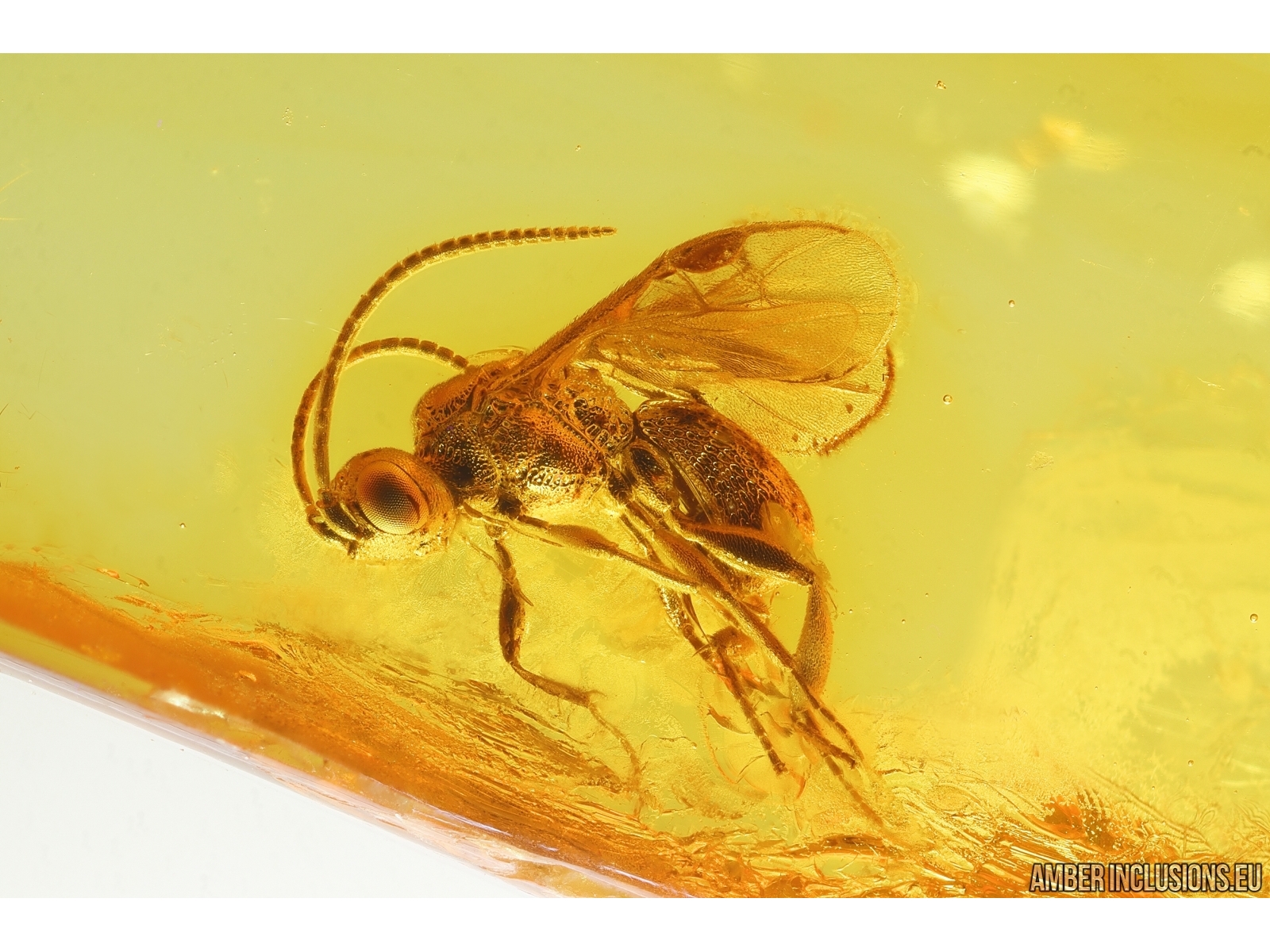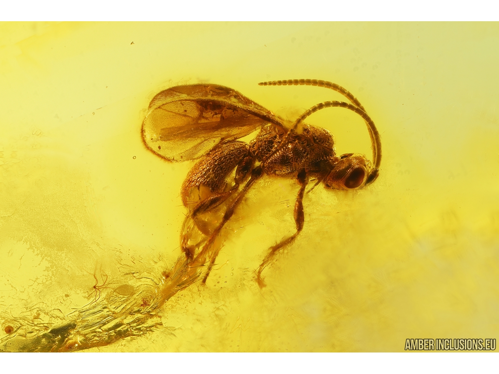 Baltic amber stone with fossil inclusions, trapped 34-56 million years ago -Wasp Braconidae Cheloninae.