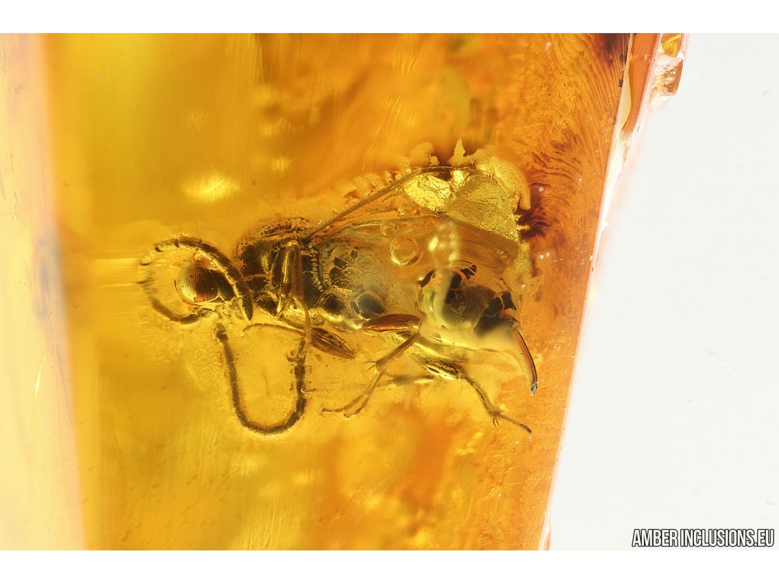 Baltic amber stone with fossil inclusion, trapped 34-56 million years ago - Parasitic Wasp Hymenoptera Proctotrupidae.