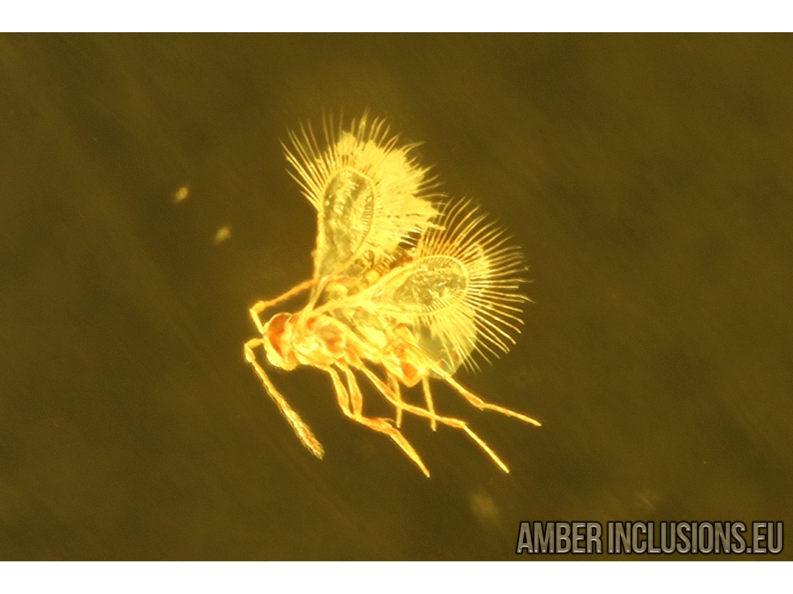 Baltic amber stone with fossil insects - Webspinner, Embioptera with Mite and rare Wasp.