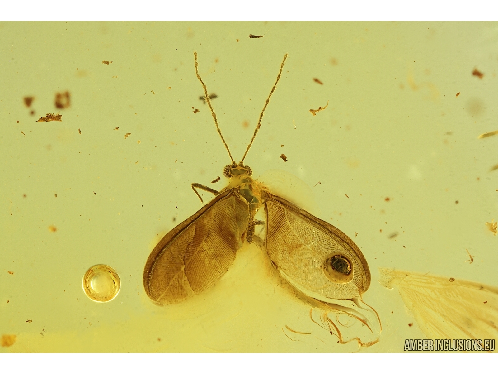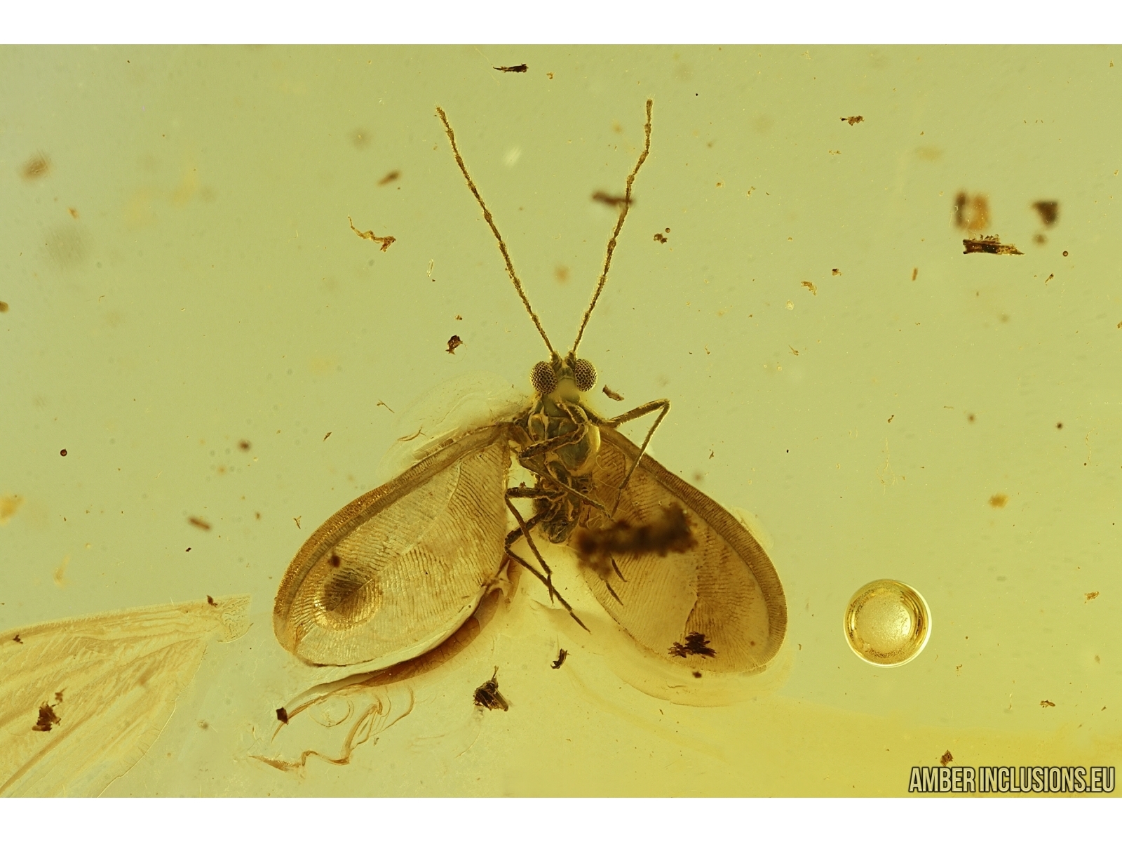 Baltic amber stone with fossil inclusion, trapped 34-56 million years ago - Winged Coccid, Coccoidea.