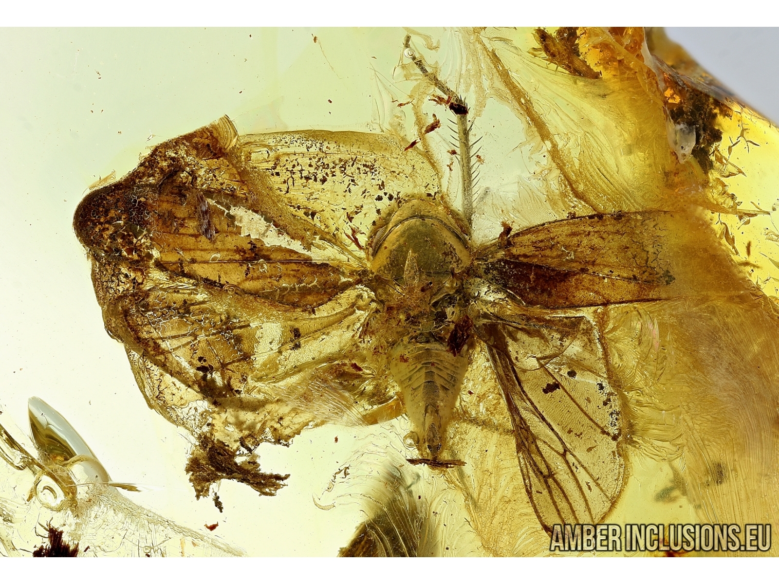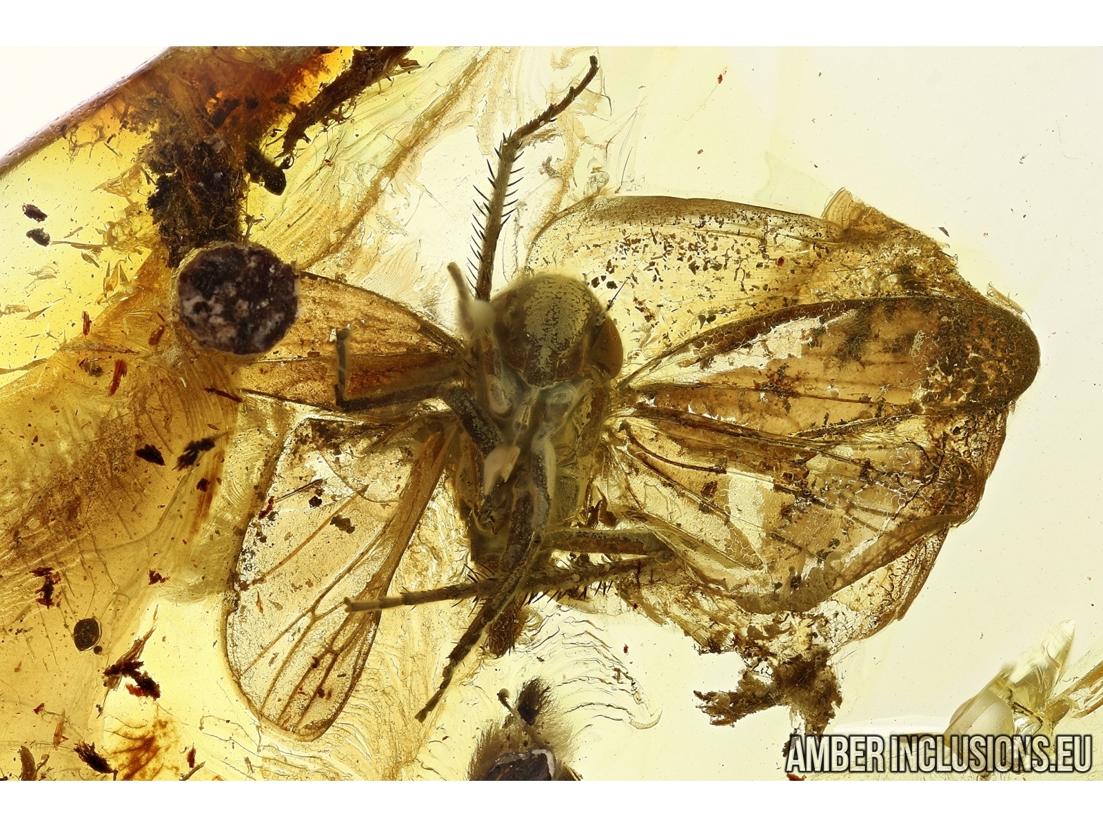 Baltic amber stone with fossil insect - WINGED PLANTHOPPER, HEMIPTERA, CICADINA.